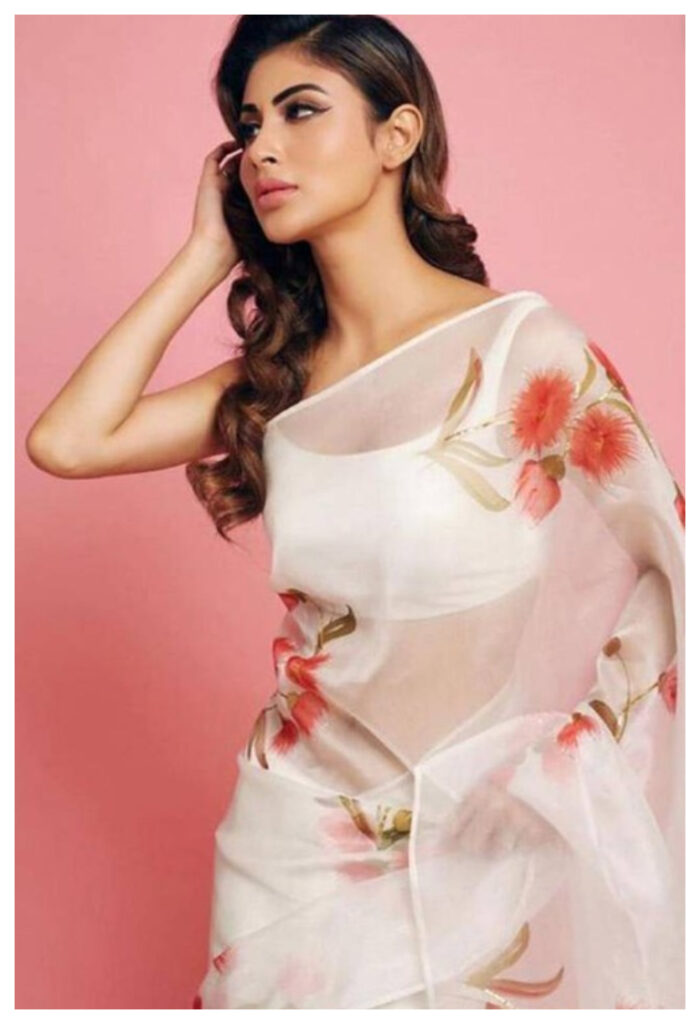 How can we miss out on Cloud Dancer white sarees when talking about the trends that will be huge in 2026? To illustrate, we present this breathtaking white organza saree from Mirraw. Crafted from soft organza that looks absolutely divine in this shade, it also features red floral prints on its body. Perfect for the days that you want to radiate casual elegance, this one is sure to become a wardrobe staple for sure.