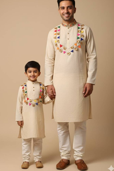 Cream Father-Son Kurta Set