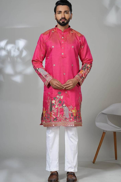 Diwali is the time for lights, celebrations, and dressing up in style. But one such attire with which you can never go wrong is a kurta pajama set. However, which kurta pajama is best for you? As numerous brands and styles often leave shoppers confused! Mirraw suggests choosing a kurta pajama design that is not only trendy but also suits your personality. Diwali, being the festival of bling, calls for kurta pajama designs that are bright and shiny. However, the glam should be subtle and comfortable to the eyes so that you don’t end up looking like a Diwali lamp. Also, be mindful of the fabric you choose for the kurta pajama. It should be such that you can easily wear it during the pooja as well as when you sit with your friends for long conversations. So, if you haven’t started your Diwali shopping yet, this blog will walk you through ten designer kurta pajama sets that you will cherish.
