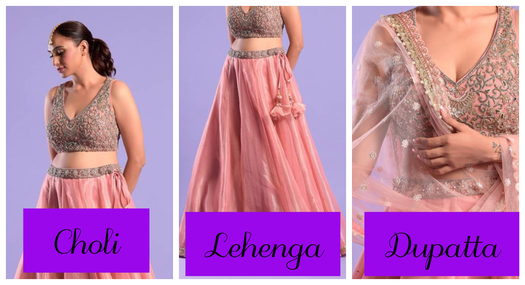 What is a lehenga has a very simple answer. Well, in layman’s terms, it is a traditional Indian attire that features a skirt, a choli, and a dupatta. The design and pattern vary from region to region. For example, sequin and stone work lehengas are more popular in Northern India. While thread and mirror work define the lehengas of Gujarat and Rajasthan. It is popularly worn during festivals, weddings, and parties.