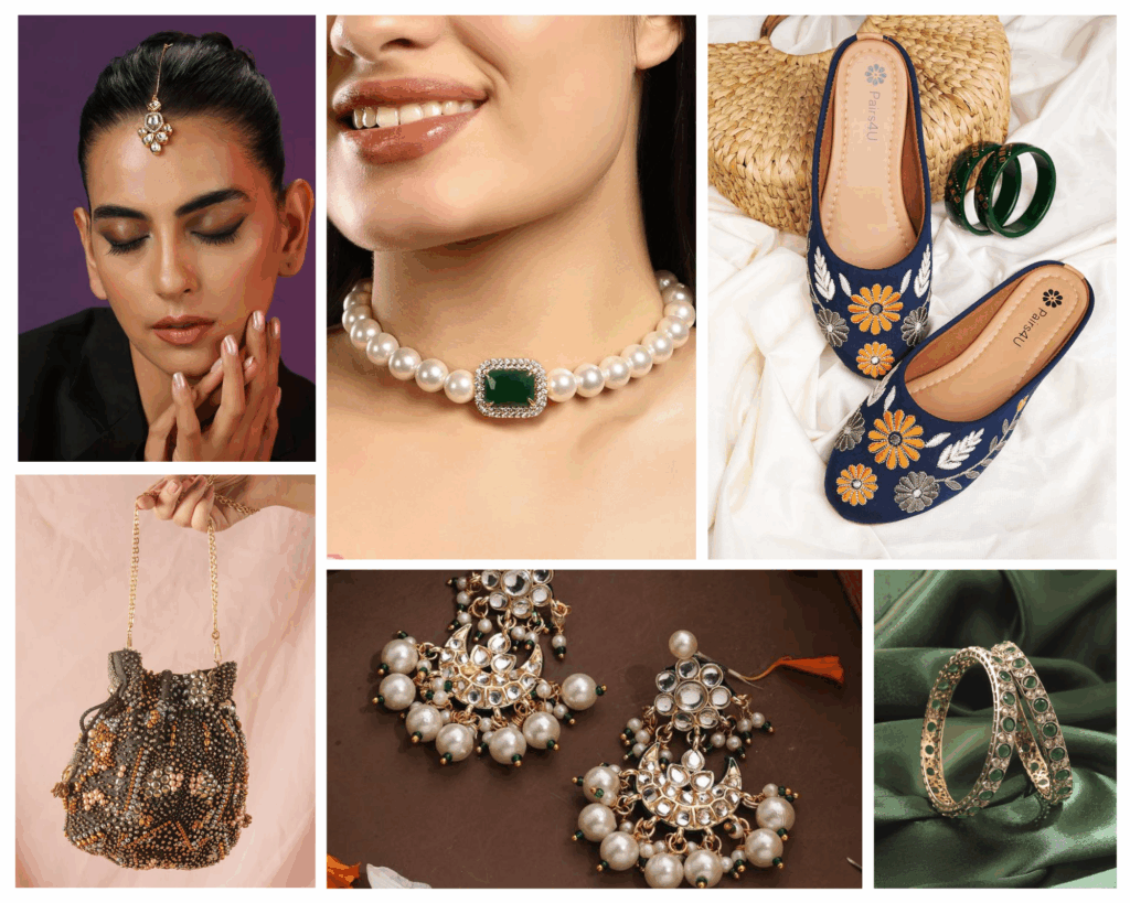A potli bag is a stylish and useful accessory for a designer sharara set. It matches traditional outfits and adds colour and embroidery to your look. Potli bags are easy to carry and perfect for holding small essentials during weddings and festivals. They complete the outfit and make the look more traditional.