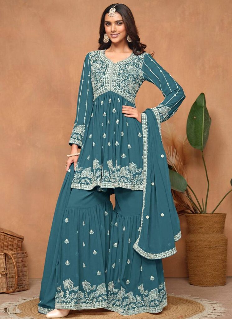 Comfort and simplicity are important when you attend a family function. You can go for a cotton or a georgette sharara suit set to look stylish. Light fabrics, simple prints, or minimal embroidery work well for small functions and get-togethers. A sharara keeps your look elegant without feeling overdressed, making it suitable for spending long hours with family comfortably.