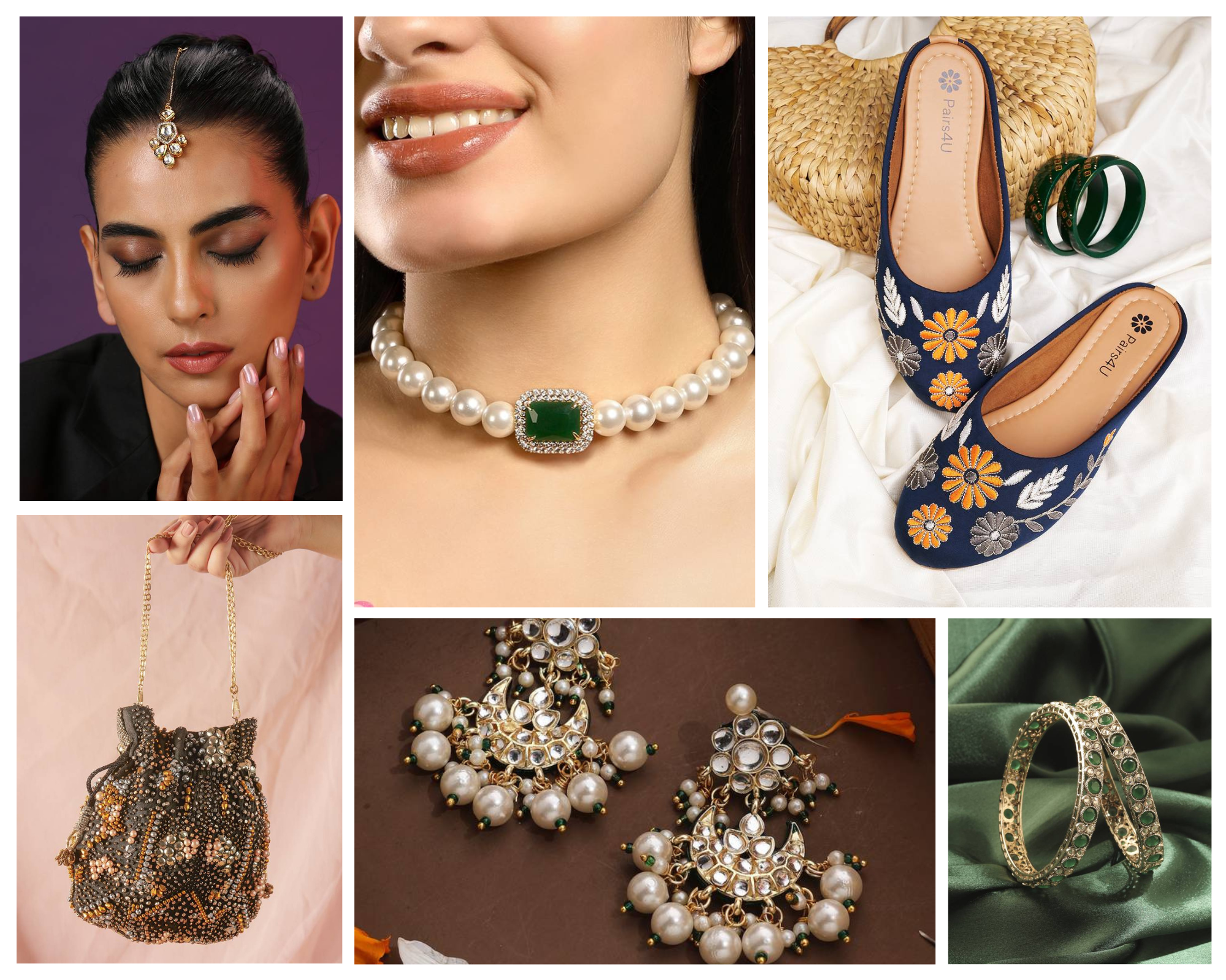 A potli bag is a stylish and useful accessory for a designer sharara set. It matches traditional outfits and adds colour and embroidery to your look. Potli bags are easy to carry and perfect for holding small essentials during weddings and festivals. They complete the outfit and make the look more traditional.