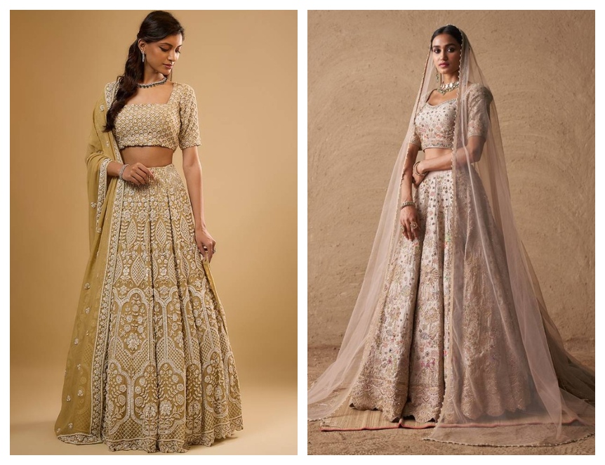 The placement of the embroidery seems to make the biggest changes in your overall ensemble. For instance, heavy embroidery on the lehenga gives a royal feel, while detailed embroidery on the choli makes it look elegant, and embroidery on the dupatta borders brings the whole look together.