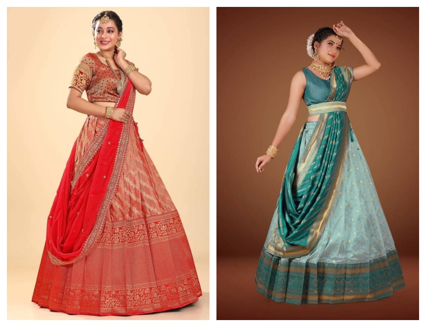 These lehengas are all about comfort and simplicity. They feel light, breathable, and very natural on the body. These are usually worn for small daytime functions, intimate weddings, or for women who prefer an understated look that still feels thoughtful and well put together.
