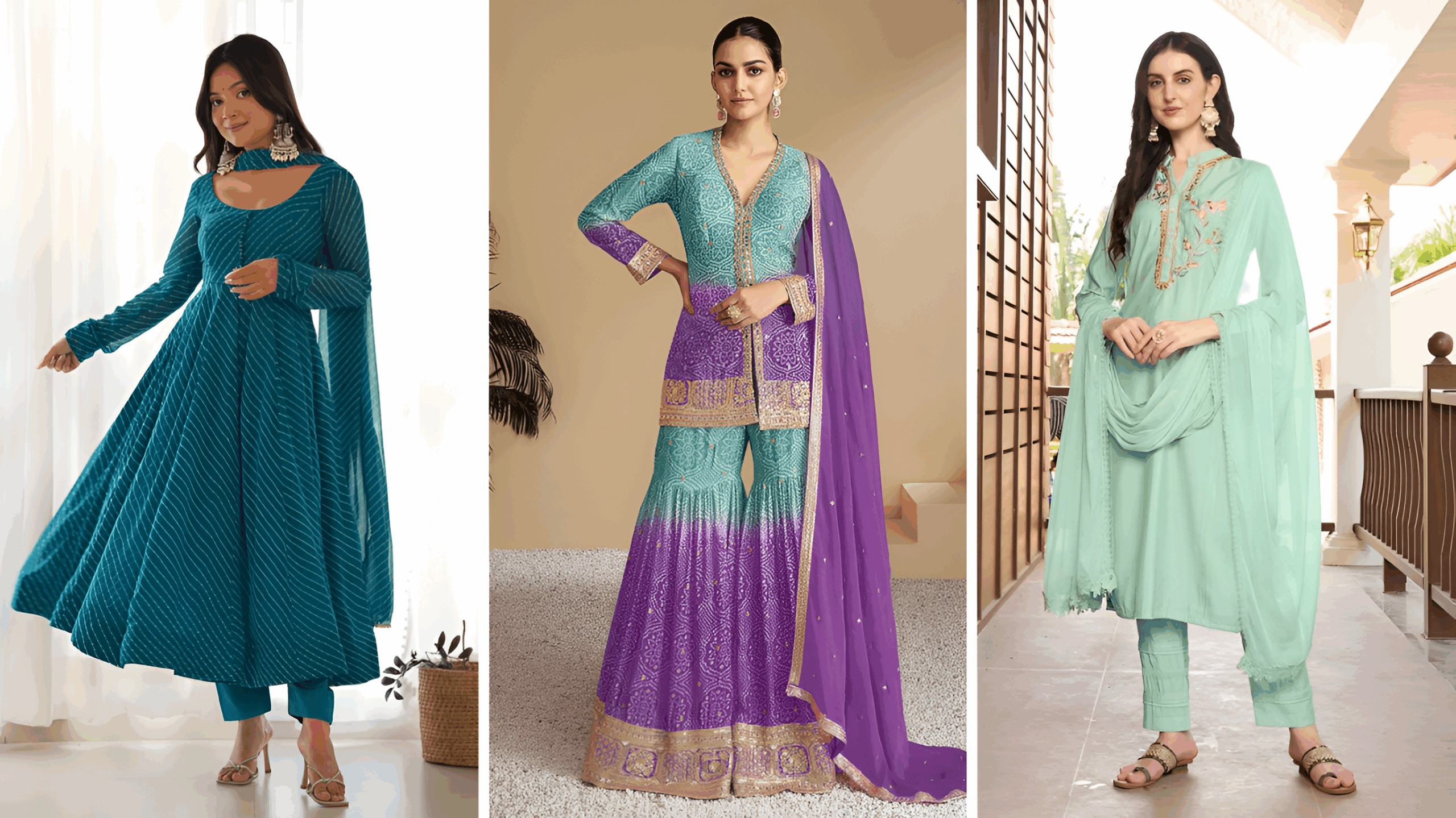A Brief Comparison of Anarkali vs Sharara vs Churidar Suits