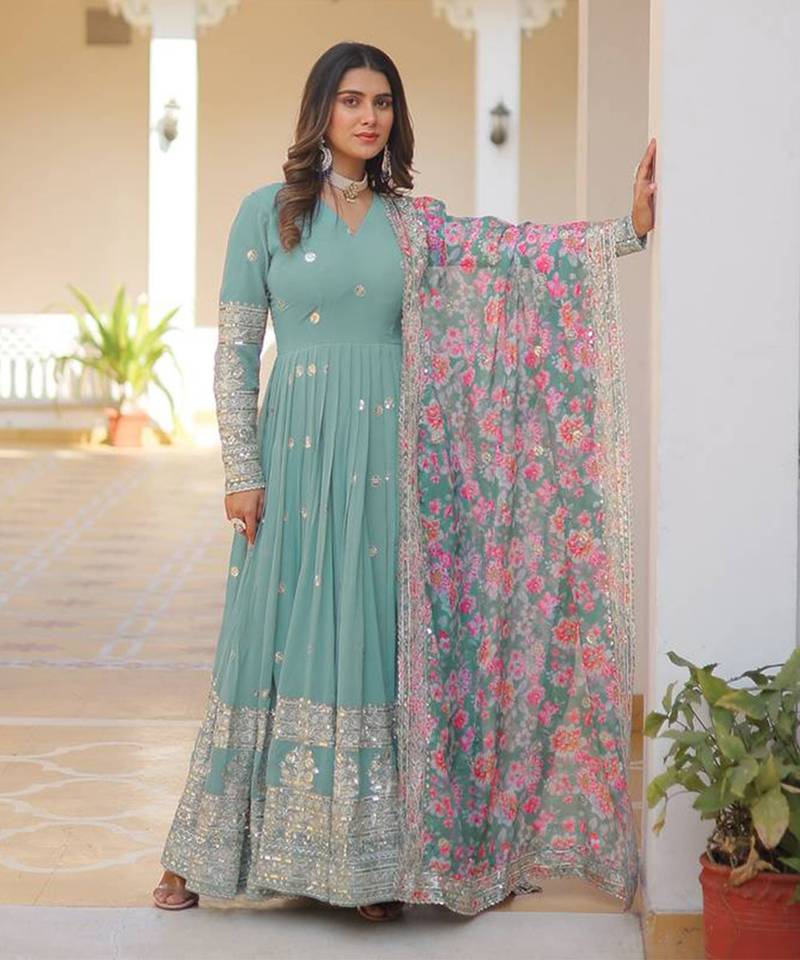 A festive favorite, the Anarkali is specially designed to create a dramatic, floating, and rhythmic motion as you walk. Its swish is often described as swan-like or courtly. It is also renowned for its dramatic flare This flare is achieved by attaching a gathered or panelled skirt to the bodice and exudes a formal and graceful appearance. These tantalising features make the Anarkali suit perfect for receptions, weddings, festivals or ceremonial moments. These suits feel extremely dressy due to their heritage, flattering silhouettes, luxurious materials and intricate detailings. They also come with versatile lengths, hence you can choose one that suits your comfort. These elements combine to make the Anarkali suit the perfect festive attire. While these suits are celebrated for their swing while walking, they look just as graceful when you are standing or stationary. They are often composed of flowy fabrics that gently fall on your body as you are sitting or standing. One of the most elegant silhouettes in the salwar kameez category, the Anarkali suits are a total show stealer.