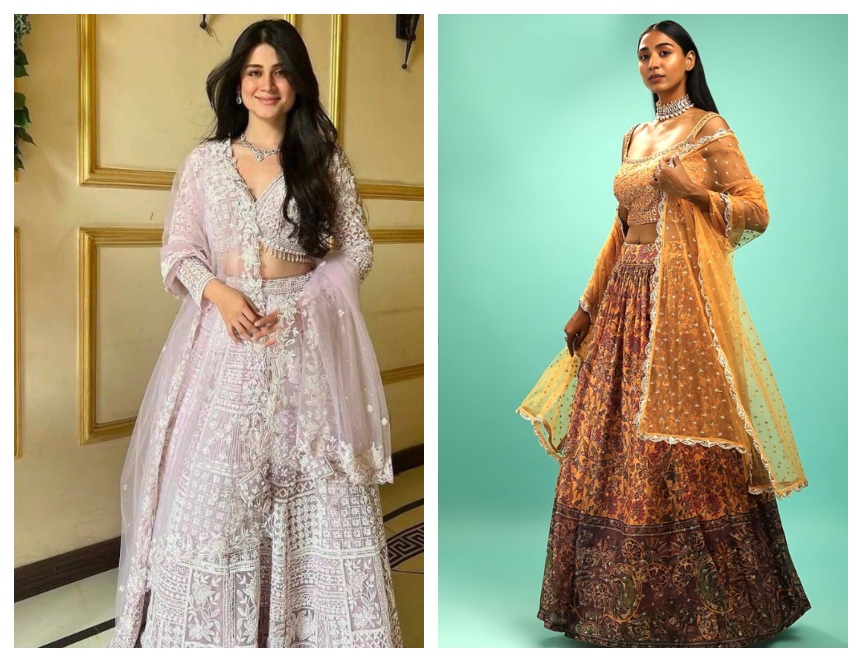 To achieve this look, you need to drape the dupatta over one shoulder and then pin it at the waist. This way, you are allowing the other end to fall freely, which seems like a great composition of structure and flow. The style also lets the lehengas for women shine on their own, and lets you move easily.