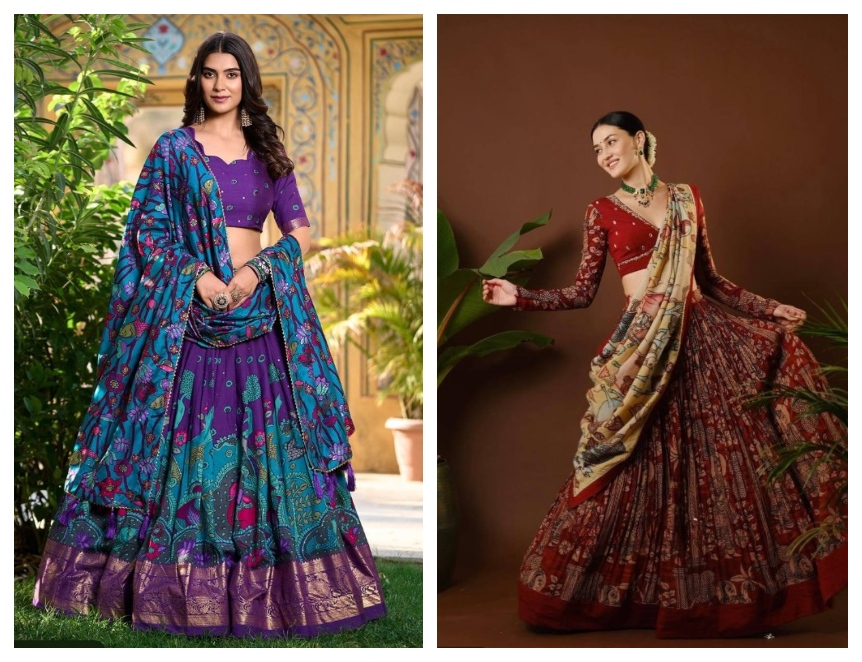 Mysore silk and rich handlooms are accepted from Karnataka. Lehengas here can be slick and shiny. They are endowed with plain designs and firm silk value. A Mysore silk lehenga appears sleek and crisp. The style is straightforward, but touches of silk make it feel rich.