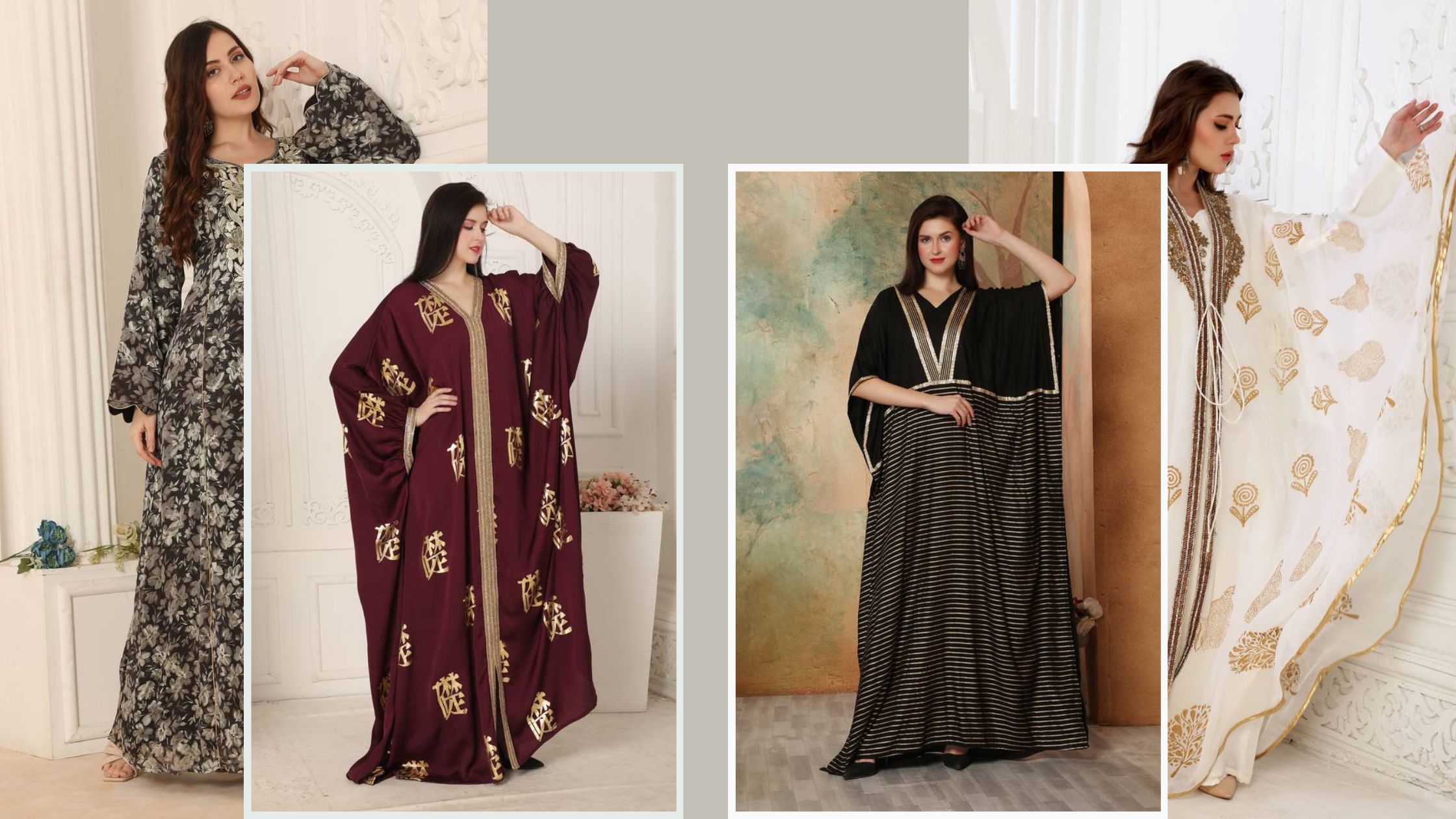 - Elegant caftan styling for festive and wedding events